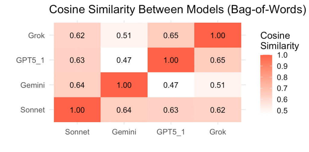 The models are not writing the same essay, but they’re clearly responding to the same conceptual fingerprint.